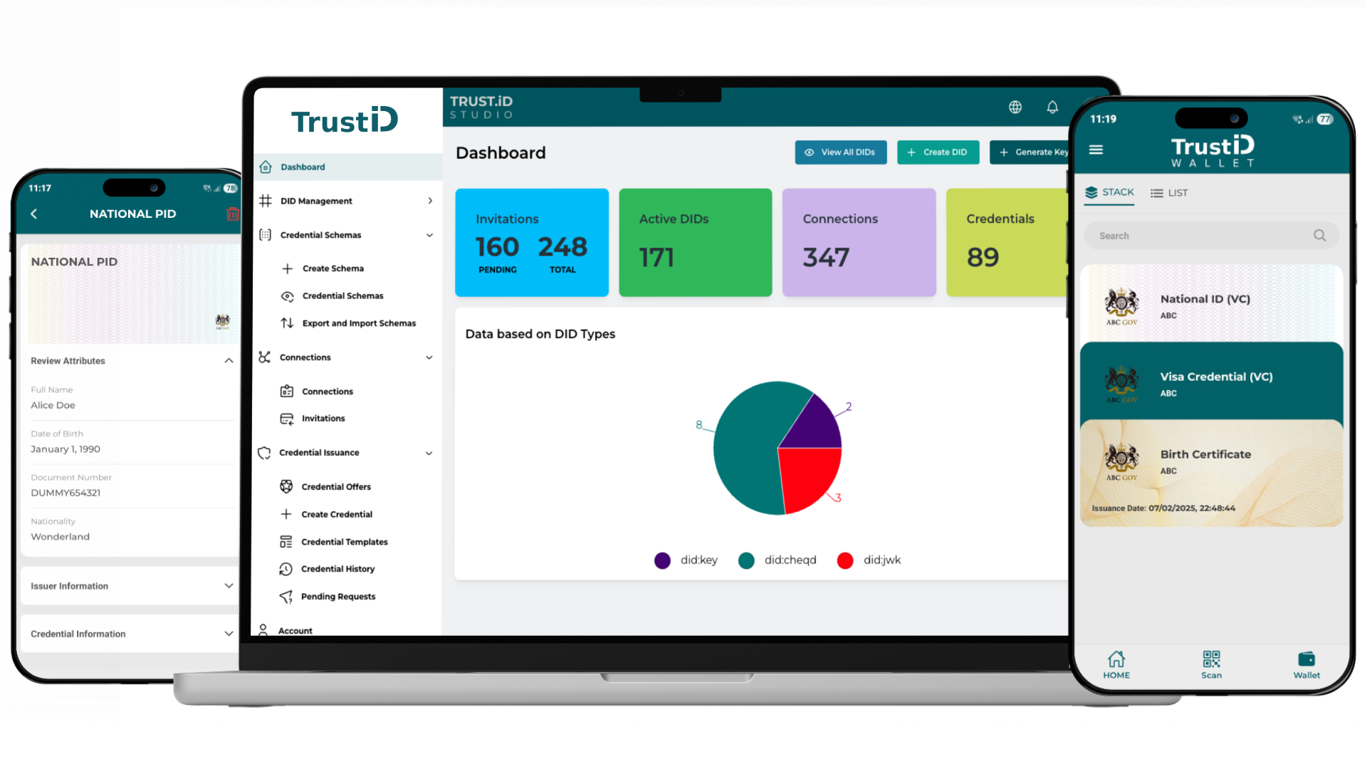 TrustiD هي منصة SSI (الهوية الذاتية السيادية) جاهزة للاستخدام في المؤسسات، مستوحاة من مؤسسة Open Wallet Foundation والمعايير المفتوحة في حركة SSI، إلى جانب جميع الميزات التي توفرها.